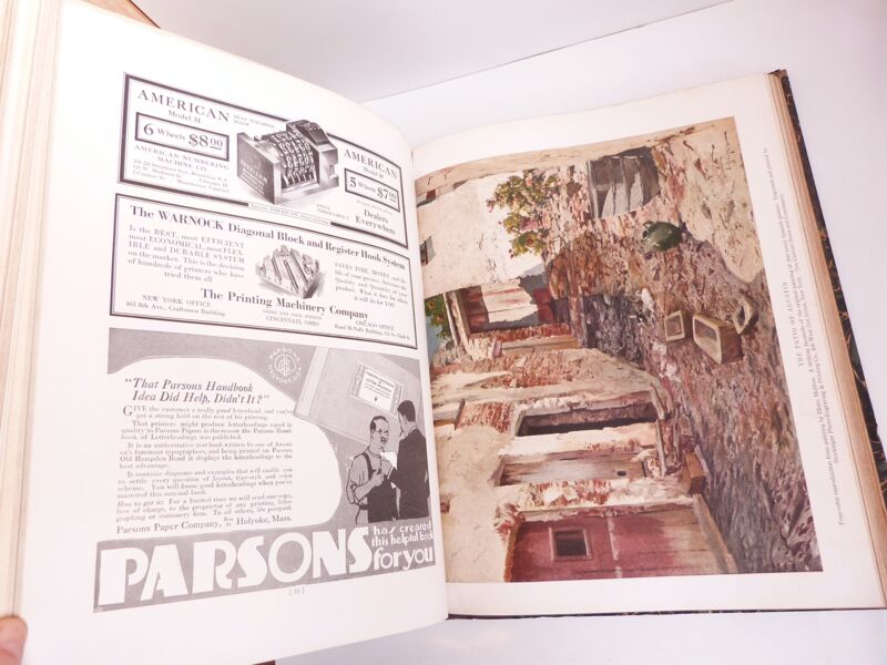 Revue américaine présentant des suggestions sur l'utilisation des papiers, encres, gravures, procédés typographiques...