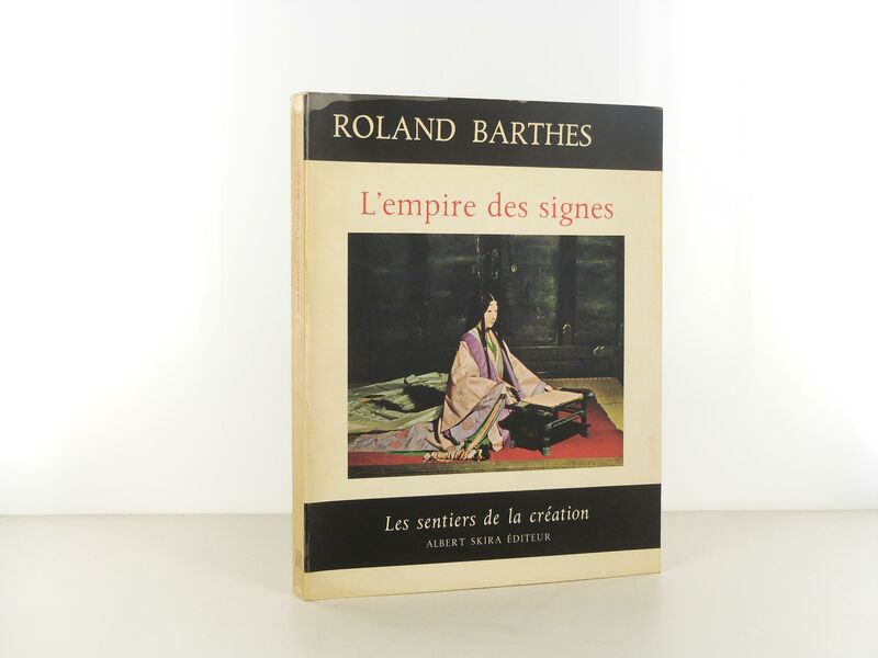 ÉDITION ORIGINALE du tirage courant de ce texte consacré par Barthes au Japon. Exemplaire enrichi d'un bel envoi de Barthes à Rosabianca Skira, épouse d'Albert Skira.