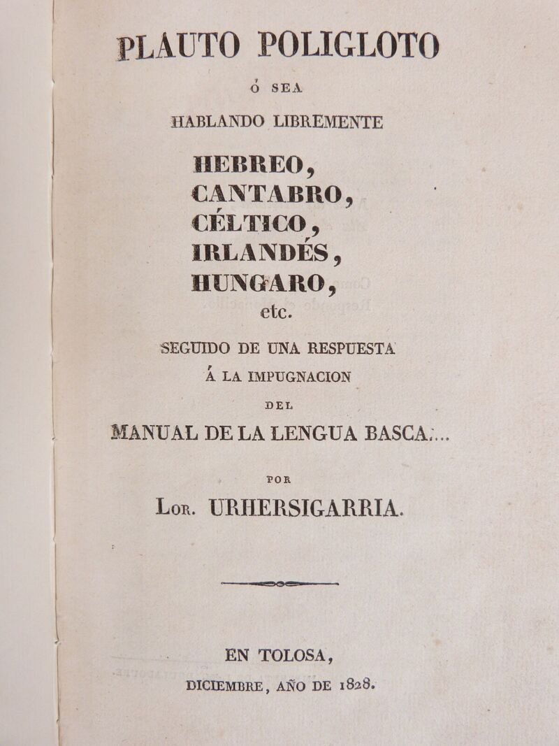 Plauto poligloto o sea hablando libremente Hebréo, Cantabro, Céltico, Irlandés, Hungaro, etc. seguido de una respuesta a la impugnacion del manuel de la lengua basca...