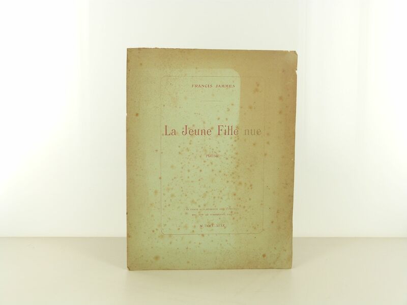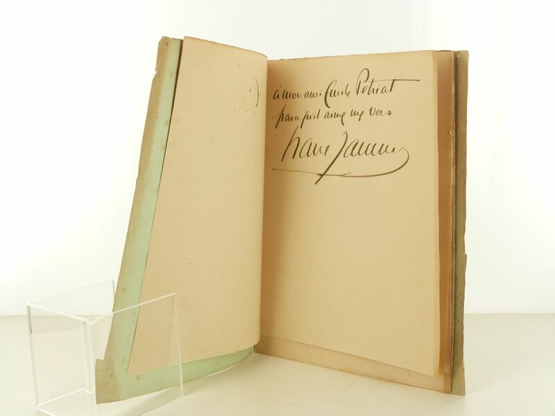 ÉDITION ORIGINALE de ce tiré-à-part de L'Ermitage d'avril-mai 1899. Tirage limité à 150 exemplaires numérotés, celui-ci l'un des 125 sur vélin blanc. Exemplaire enrichi d'un envoi autographe de Francis Jammes "à mon ami Émile Pétriat, parce qu'il aime mes vers".