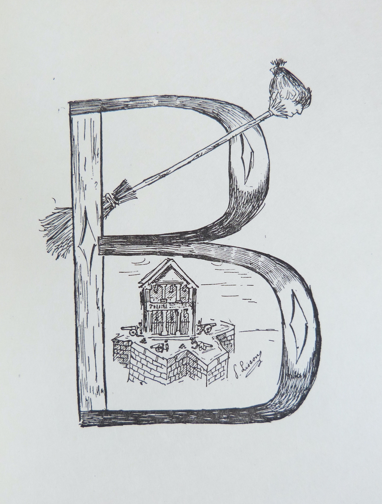 Couverture souple rempliée et imprimée en rouge et noir. Illustré d'une vignette de titre, de 18 figures à pleine page sous forme d’alphabet et de nombreuses lettrines d’après les dessins de Paul Lisson. A grands témoins. Petit manque de papier au bas du dos.