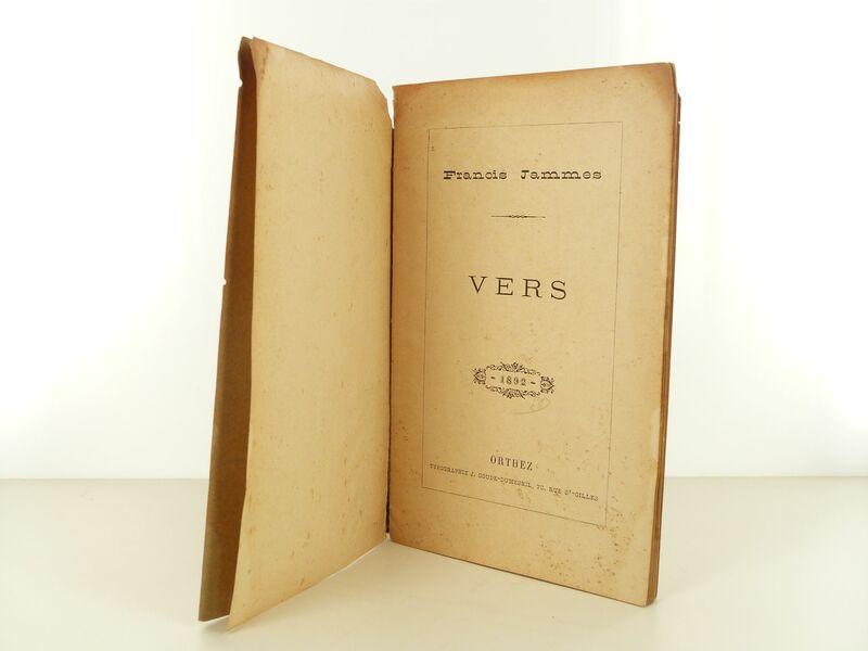 Avant d'être publié chez Ollendorff en 1894, Jammes fait paraître 3 plaquettes à compte d'auteur à Orthez, toutes sobrement intitulées Vers, le style Jammes s''y impose déjà, léger, primesautier :