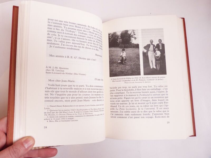 Exemplaire enrichi d'une photo de J.-M. QUENEAU, de 2 cartes postales dont une écrite et d'un ENVOI AUTOGRAPHE SIGNÉ de Jean-Marie Queneau.