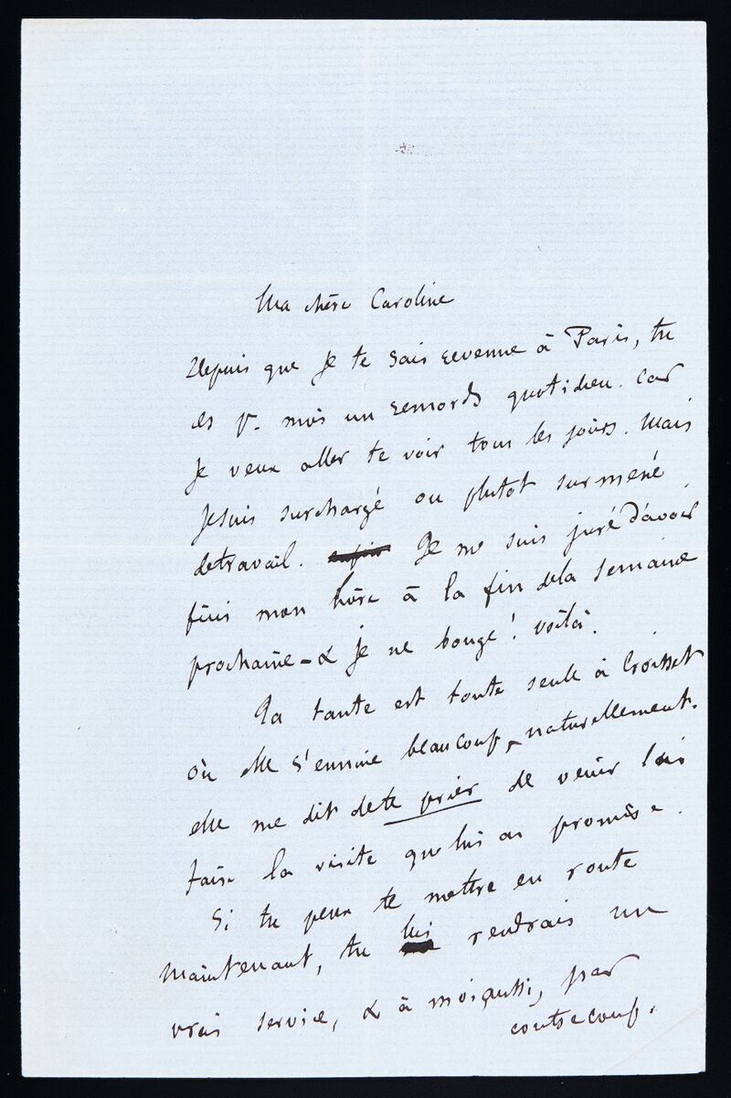 Ta tante est toute seule à Croisset où elle s’ennuie beaucoup, naturellement. Elle me dit de te prier de venir lui faire la visite que [tu] lui as promise.