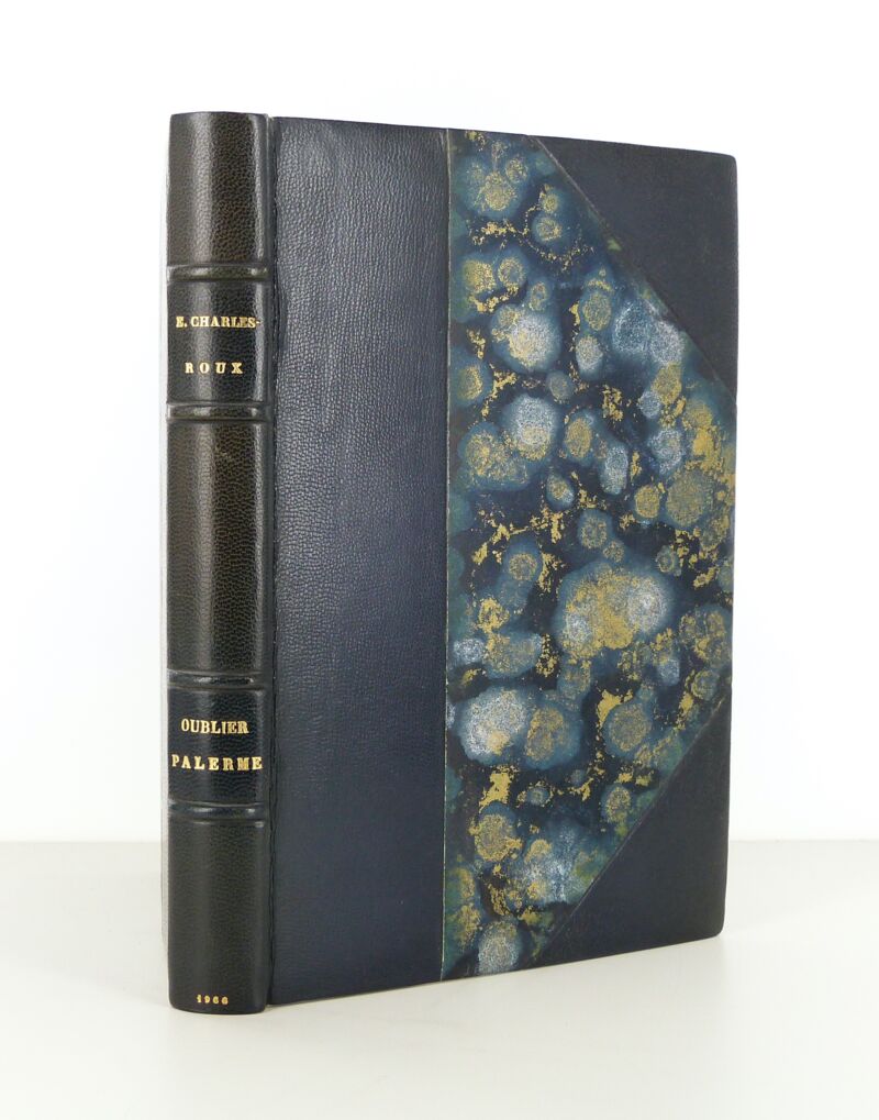 Reliure demi-chagrin bleu à coins. Dos à nerfs. Tête dorée. Couverture et dos conservés.