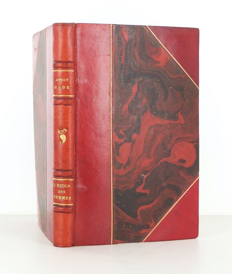 Reliure demi-veau rouge à coins. Dos à nerfs. Tête dorée. Couverture et dos conservés. Mouillures éparses.