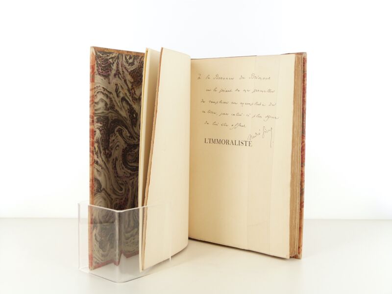 "À la baronne de Brimont, en la priant de me permettre de remplacer son exemplaire de ce livre, par celui-ci plus digne de lui être offert. André Gide."
