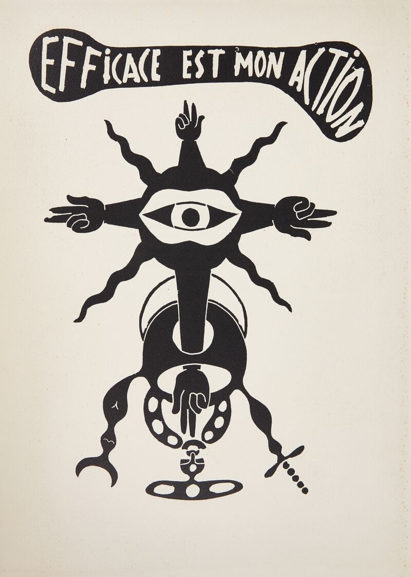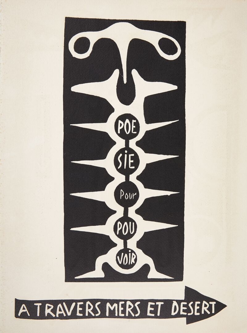 Couverture rempliée et imprimée du titre en linogravure. Texte et frontispice en couleurs d’Henri Michaux reproduit en offset par Victor Michel. Mise en page de 21 linogravures par Michel Tapié.