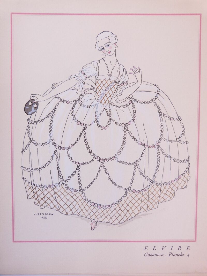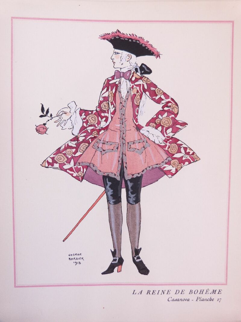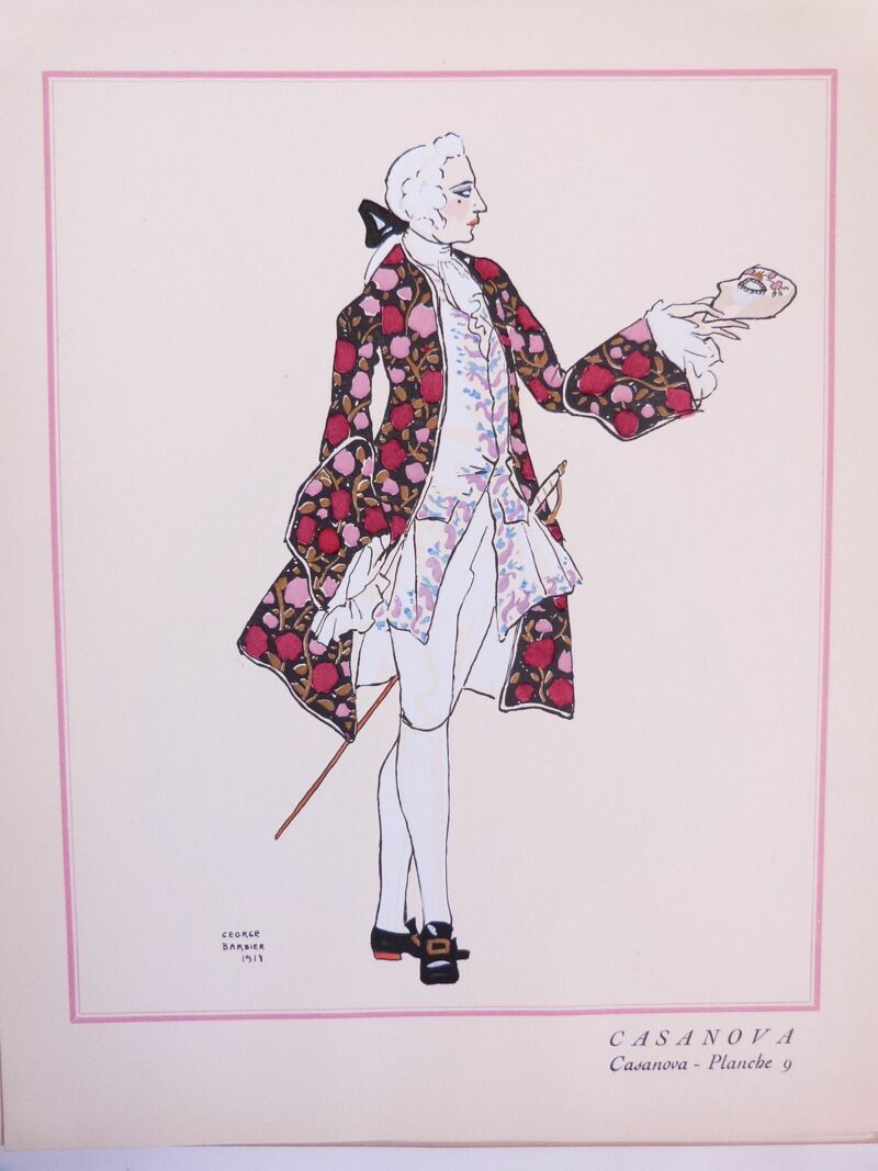 Ces planches représentent les costumes de Casanova, pièce de Maurice Rostand créée aux Bouffes parisiens, le 22 février 1919.
